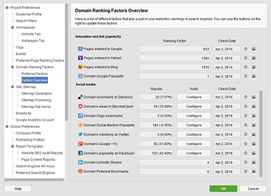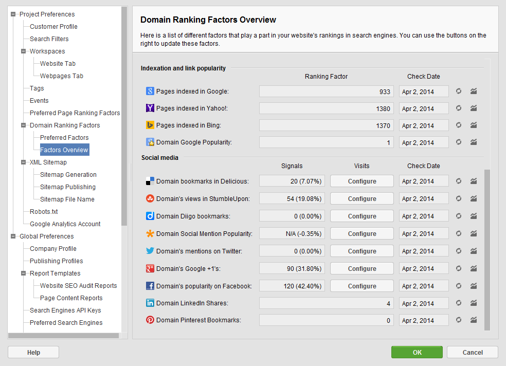The Social Media Summary dashboard in SEO PowerSuite is a quick yet perfectly informative overview of your social media performance. View the total number of social signals for multiple social platforms. See the overall traffic sent to your site from social media and evaluate effectiveness.