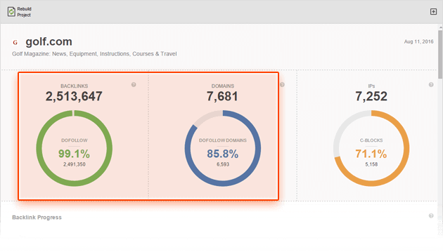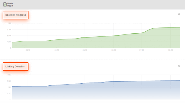 3. Assess your link profile growth over time. Check with the Backlink Progress and Linking Domains graphs to see how your site's number of backlinks has been growing. Look for spikes to figure out which of your marketing activities (content, campaigns, etc.) have been especially successful in attracting links.