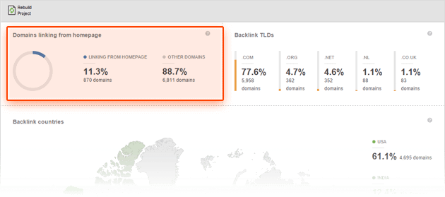4. Analyze how many backlinks are coming from homepages. As the homepage is the most authoritative page of a website, links appearing there can be easily deemed as paid links — especially if their number is excessive.