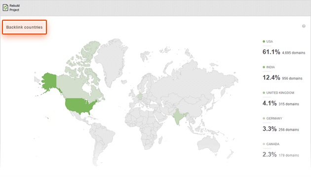 5. Check backlink countries. When it comes to backlink countries, just like with other aspects of link audit, you should keep in mind your links' diversity. Yet the rule of a thumb is that if you optimize your website for a specific geo-location, your aim is to get maximum location-relevant backlinks.