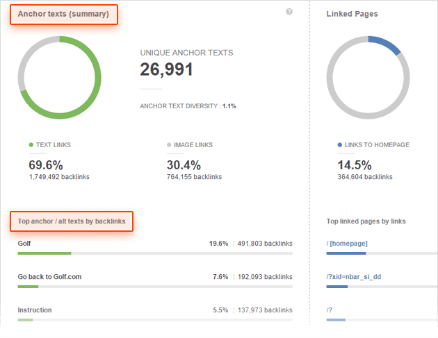 6. Check top anchor texts and keywords. Irrelevant anchor text, keyword stuffing, or too many identical anchors can get you in trouble with search engines and cause a ranking drop.