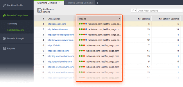 To do this, go to the Link Intersection submodule (still under the Domain Comparison module) to see the domains that link to two or more of your competitors but not to you.