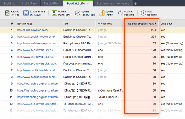 Tips: 1. Check how much traffic each backlink brings. Although not an SEO factor, stats on traffic through backlinks let you see which of your links bring actual visits to your site.