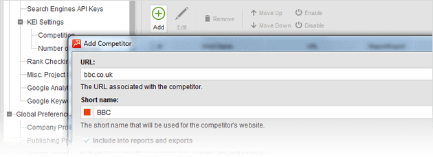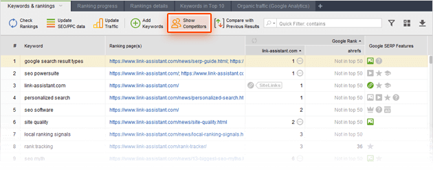 Specify your competitors' URLs. Go to Preferences > Competitors in Rank Tracker,
