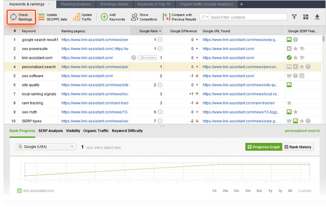 Congratulations! With a list of efficient keywords and your rankings checked, you can now get down to tracking the amazing progress your site's about to make in SERPs.