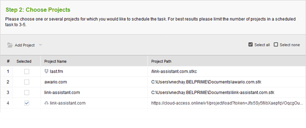 Go through the steps, selecting the type of the task, the projects it will run for, and the task's time and regularity.