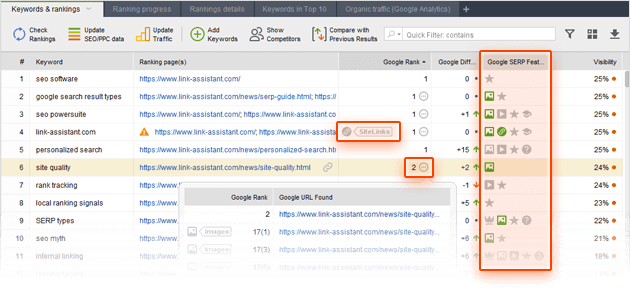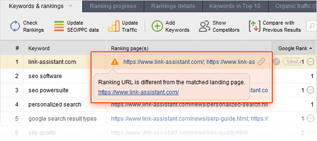 Making sure the right pages are ranking for the right keywords is an indispensable part of rank tracking, and (lucky you!) Rank Tracker offers a simple way to do that.
