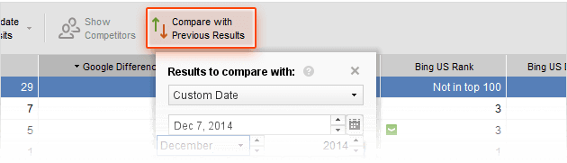 1. Set a date for comparison. Click to select which results you want your current ranks to be compared against — or even set a custom date for comparison.
